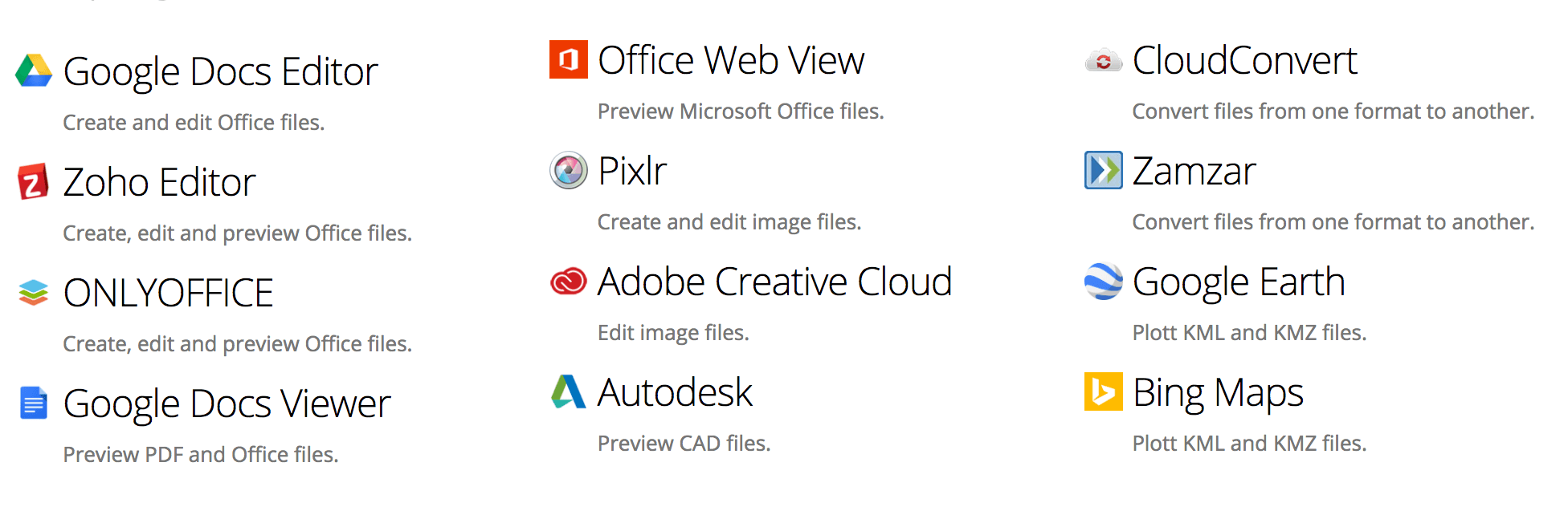支持Google Docs,Google Drive,AutoDesk,Office等功能。